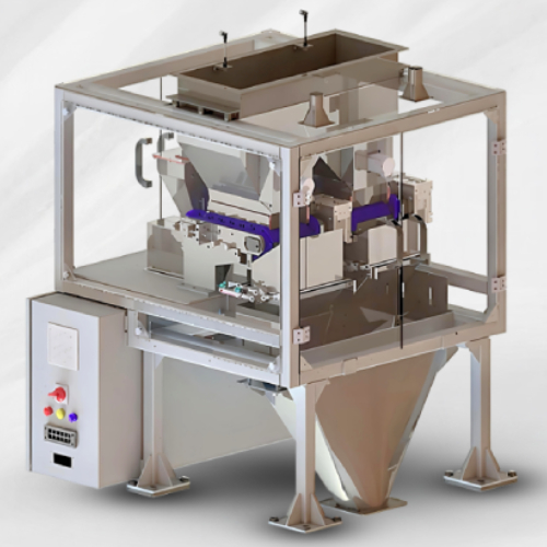 A Dosing System for free and semi-free flowing products, engineered for free flowing powder and free flowing granular applications, dosEQ supports dosing from 100g to 10kg. Unique separate coarse and fine filling, servo-operated filling gate & a high precision load cell at its core , delivering unmatched accuracy with upto 30 dumps/min/track—the highest in its segment. Its modular design allows multiple track configurations to match throughput needs upto 200 dumps per minute.